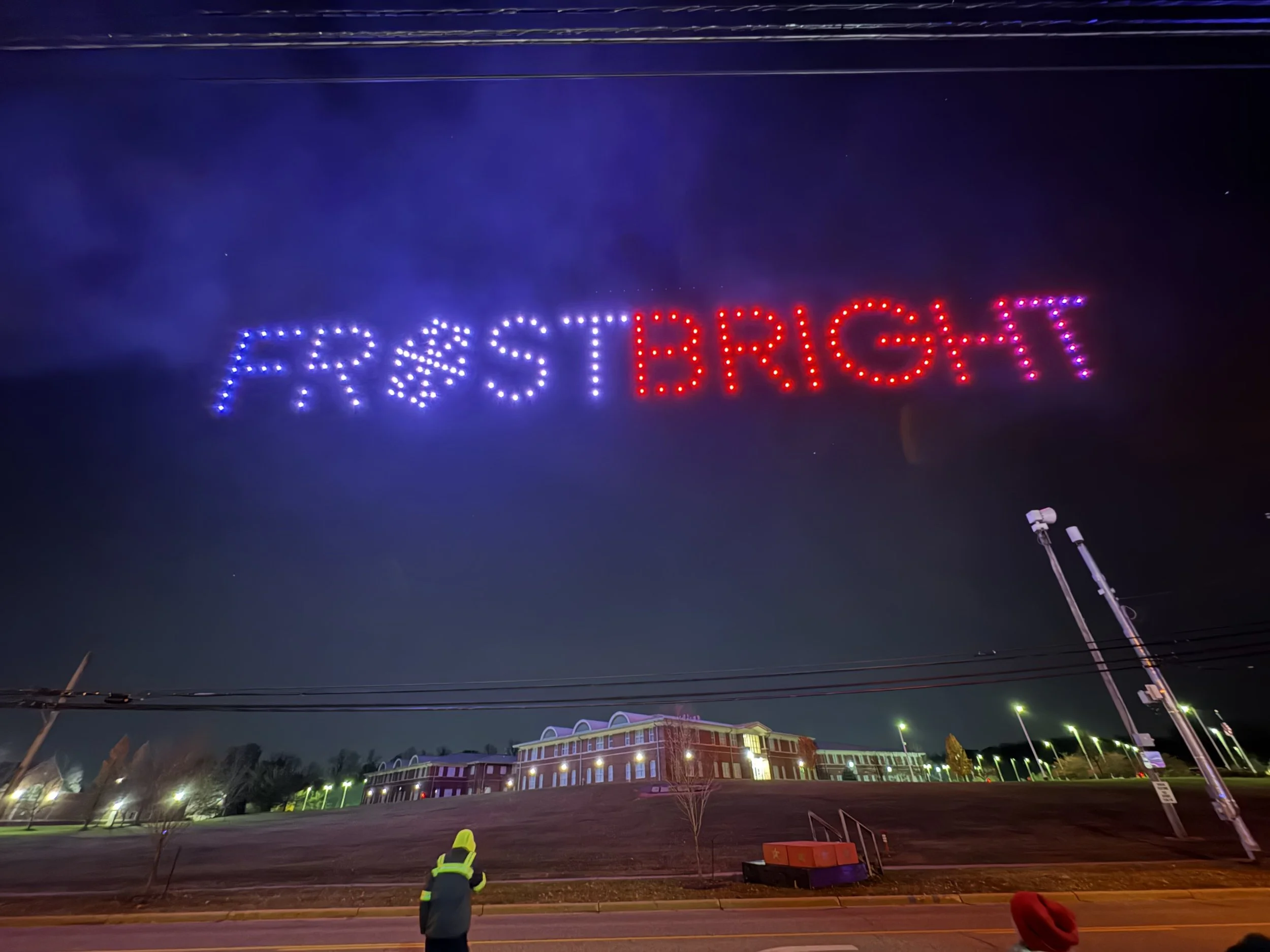 Frost bright: Before the drone show, I helped recreation staff hand out lights to parade goers.